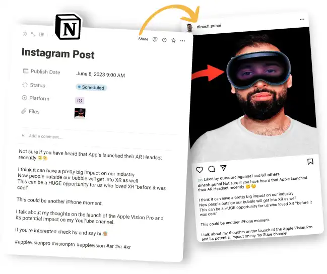 Thanks to automations, easy-to-follow templates and brand guidelines, Dinesh and his team can now streamline content production and auto-publish scheduled social media content and email newsletters through Notion.