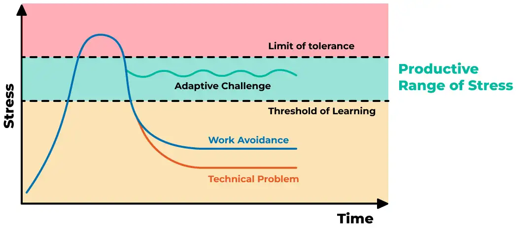 You can do this using the Adaptive Leadership Model (aka our secret formula), which is practised by our Managing Director Richard Phu. This model from Heifetz and Linsky focuses on a “productive range of stress”.