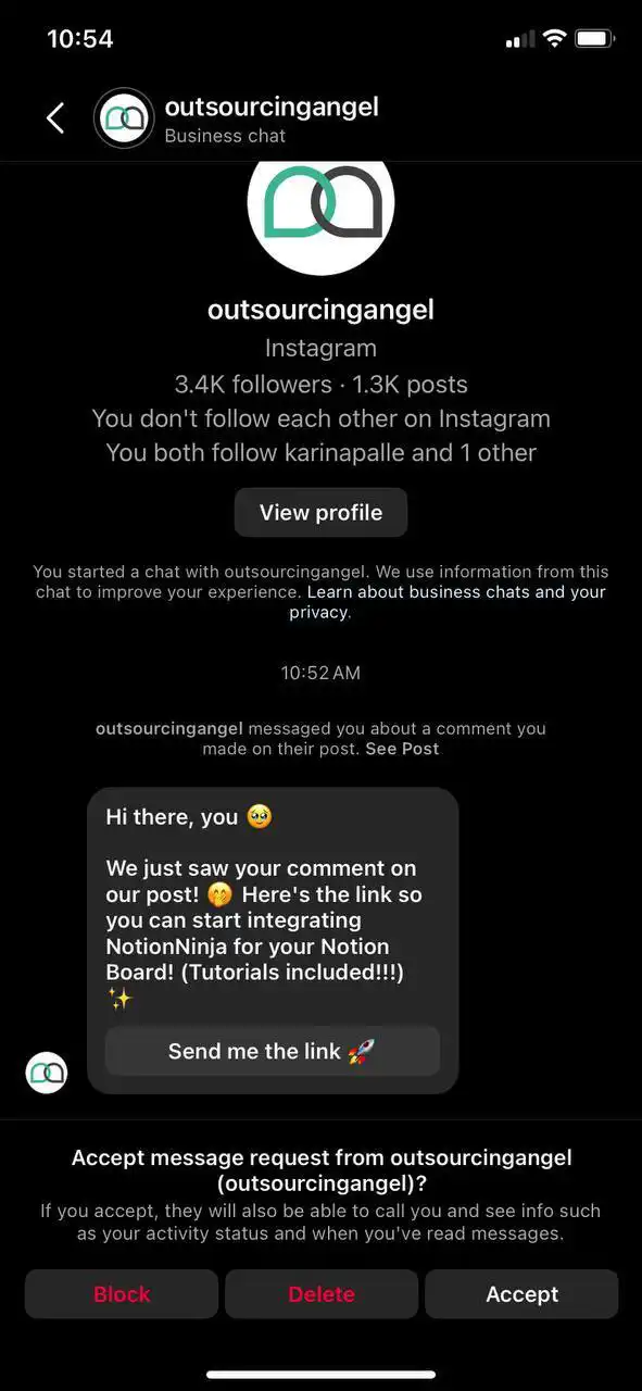 Automation tools like ManyChat can automate sending messages and comment replies to your leads. Let’s say you’re giving away a freebie to your followers. Your Instagram post could have the ManyChat automation, so everytime an interested follower comments on that post, they automatically receive a reply and a private message giving them a link to your freebie! 🤯